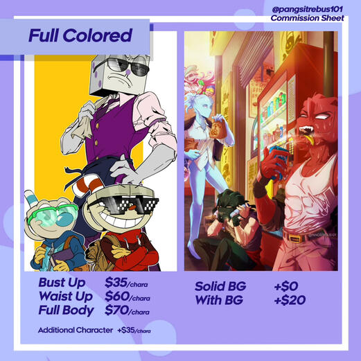 | *Detailed object | + $ 5 - $ 20 | */add chara | + $10 |